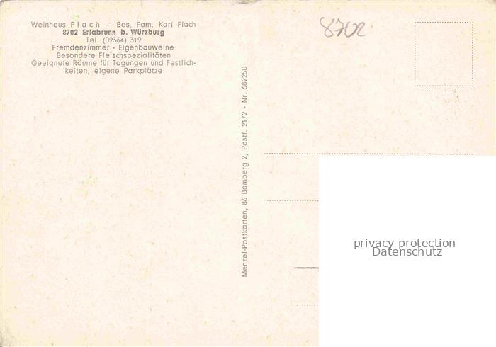 74054924 Erlabrunn Unterfranken Wuerzburg Bayern Weinhaus Flach Gastraum Kueche postalisch nicht gelaufen Erhaltung siehe scans [WerneD78] KatCode: 11110009679128