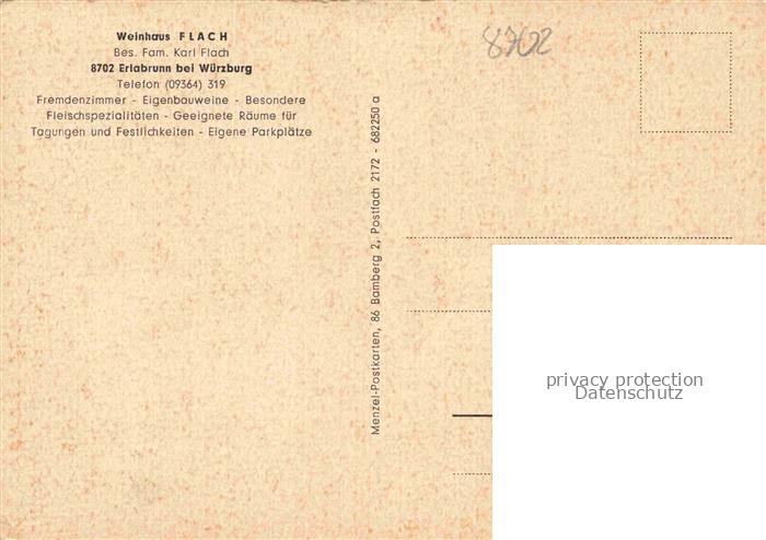 74054925 Erlabrunn Unterfranken Wuerzburg Bayern Weinhaus Flach Gastraum postalisch nicht gelaufen Erhaltung siehe scans [WerneD78] KatCode: 11110009679128