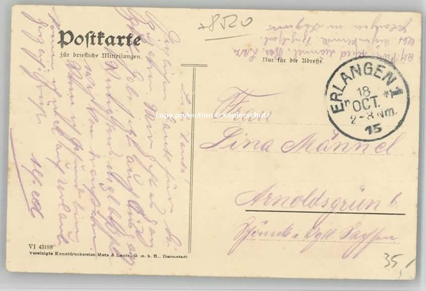 40231063 Erlangen Augenklinik Feldpost x 1915 KatCode 11110009562000