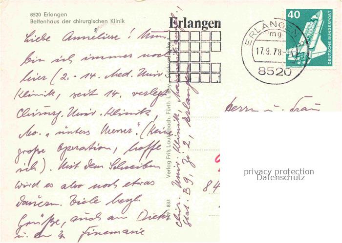 74137133 alte Postkarte ERLANGEN Bayern Bettenhaus der chirurgischen Klinik postalisch gelaufen Erhaltung siehe scans [FriedD77] KatCode: 11110009562000