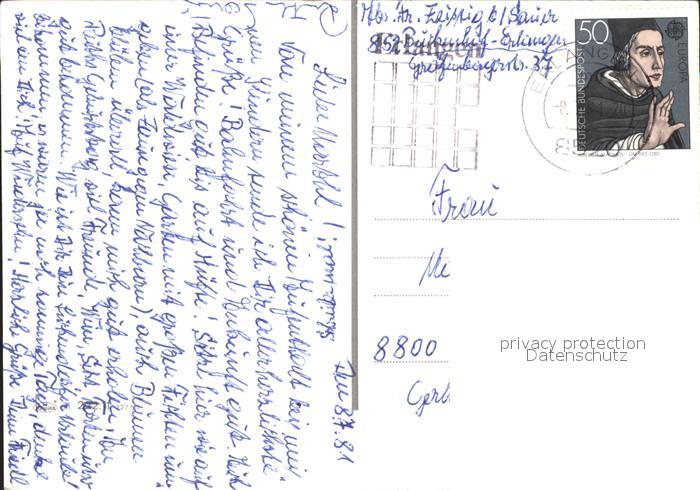 71935075 alte Postkarte ERLANGEN Bayern Bettenhaus Hugenottenplatz Orangerie Jugenheim Schloss mit Hofgarten FC postalisch gelaufen Erhaltung siehe scans KatCode: 11110009562000
