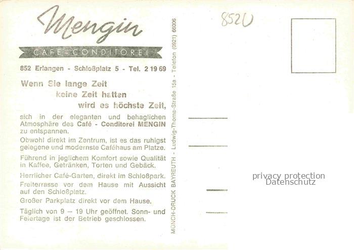 74049839 ERLANGEN Bayern Café Conditorei Mengin Gastraum postalisch nicht gelaufen Erhaltung siehe scans [FriedD77] Frie Katcode 11110009562000