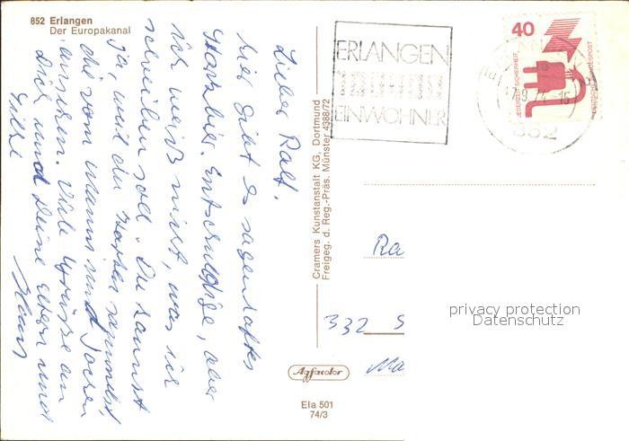 72052896 alte Postkarte ERLANGEN Bayern Europakanal Fliegeraufnahme postalisch gelaufen Erhaltung siehe scans KatCode: 11110009562000