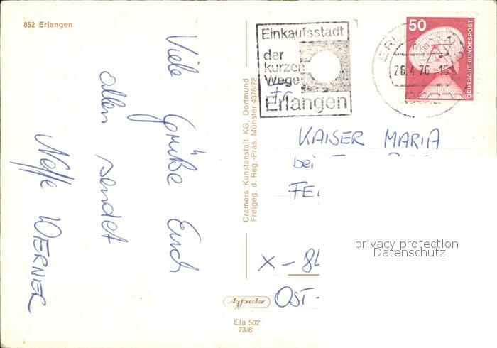 72000892 alte Postkarte ERLANGEN Bayern Fliegeraufnahme postalisch gelaufen Erhaltung siehe scans KatCode: 11110009562000