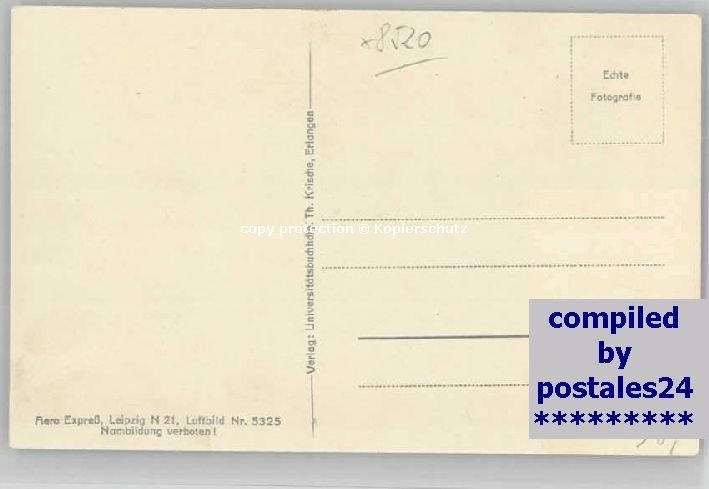 40231567 ERLANGEN Bayern Fliegeraufnahme postalisch nicht gelaufen Alte Ansichtskarte Postkarte Katcode 11110009562000