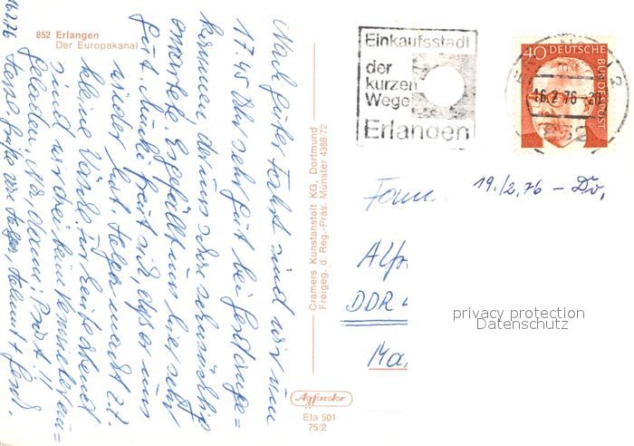72940121 alte Postkarte ERLANGEN Bayern Fliegeraufnahme Europakanal postalisch gelaufen Erhaltung siehe scans [KathaD81] KatCode: 11110009562000