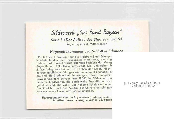 ERLANGEN Bayern Hugenottenbrunnen und Schloss postalisch nicht gelaufen Werbekarte (keine Postkarte) Erhaltung siehe scans [WerneD78] Werbekarte (keine Postkarte) Wern Katcode 11110009562000