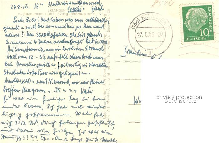 43346330 ERLANGEN Bayern Hugenottenplatz Kirche postalisch gelaufen Erhaltung siehe scans [KathaD81] alte Postkarte Kath Katcode 11110009562000