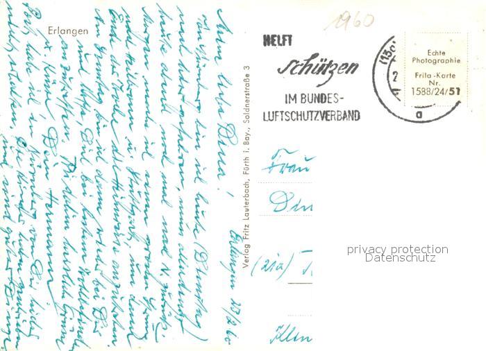 73138760 alte Postkarte ERLANGEN Bayern Hugenottenplatz Kollegienhaus Chirurgische Klinik Hugenottenbrunnen Orangerie Schloss postalisch gelaufen Erhaltung siehe scans [FriedD77] KatCode: 11110009562000