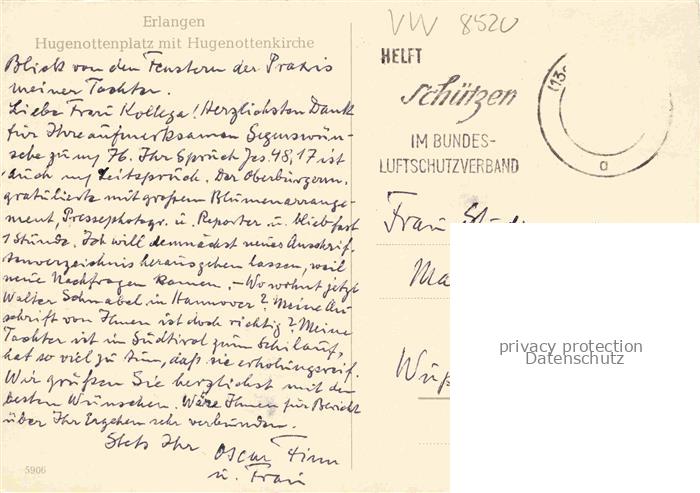 74104591 ERLANGEN Bayern Hugenottenplatz mit Hugenottenkirche postalisch nicht gelaufen Erhaltung siehe scans [WerneD78] KatCode: 11110009562000