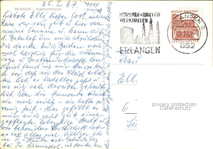 72134290 alte Postkarte ERLANGEN Bayern Hugenottenplatz postalisch gelaufen Erhaltung siehe scans KatCode: 11110009562000