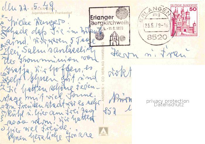 72761893 alte Postkarte ERLANGEN Bayern Jugendzentrum Frankenhof postalisch gelaufen Erhaltung siehe scans [LiesaD40] KatCode: 11110009562000