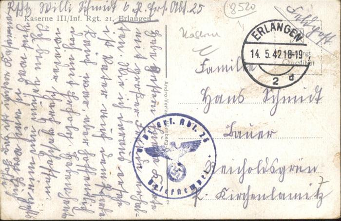 40949879 ERLANGEN Bayern Kaserne NZ4 postalisch gelaufen Alte Ansichtskarte Postkarte alte Postkarte Katcode 11110009562000