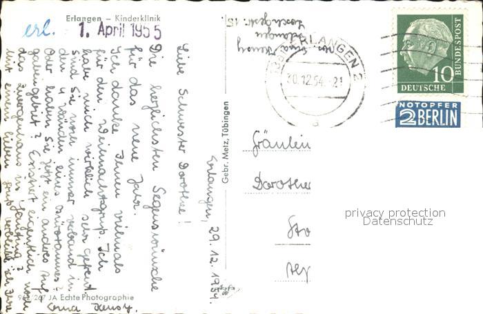 72577559 alte Postkarte ERLANGEN Bayern Kinderklinik postalisch gelaufen Erhaltung siehe scans [FriedD77] KatCode: 11110009562000