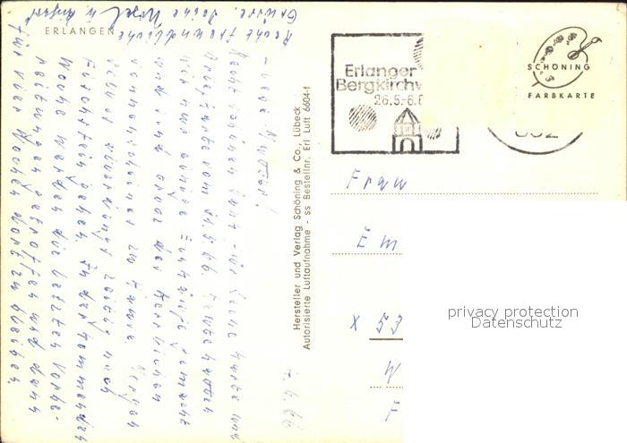 72557436 alte Postkarte ERLANGEN Bayern Luftaufnahme postalisch gelaufen Erhaltung siehe scans [KathaD79] KatCode: 11110009562000