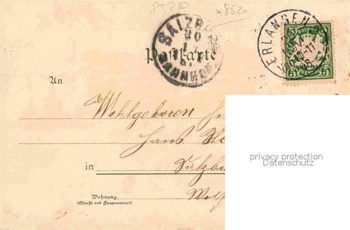 42730065 alte Postkarte ERLANGEN Bayern Markgrafendenkmal Schlossbrunnen Kunstbrunnen postalisch gelaufen Erhaltung siehe scans [NatalD47] KatCode: 11110009562000