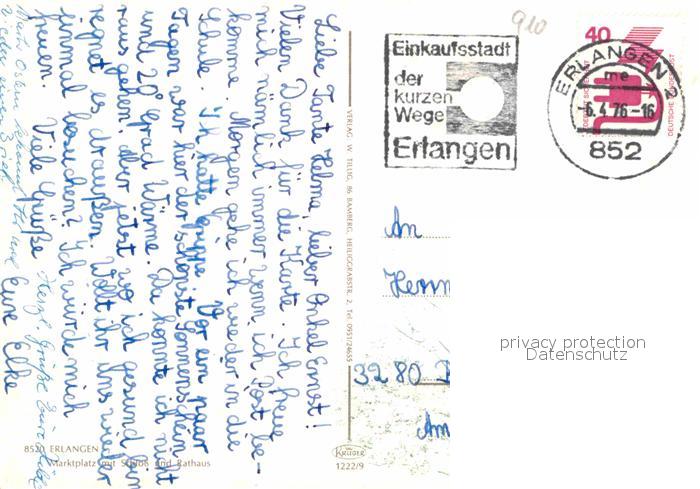 72698403 alte Postkarte ERLANGEN Bayern Marktplatz mit Schloss und Rathaus postalisch gelaufen Erhaltung siehe scans [WerneD78] KatCode: 11110009562000