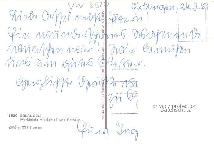 74104673 ERLANGEN Bayern Marktplatz mit Schloss und Rathaus postalisch nicht gelaufen Erhaltung siehe scans [WerneD78] KatCode: 11110009562000