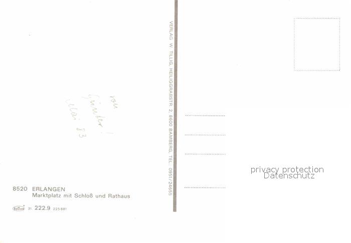 72741829 ERLANGEN Bayern Marktplatz Schloss Rathaus postalisch nicht gelaufen Erhaltung siehe scans [WerneD78] KatCode: 11110009562000