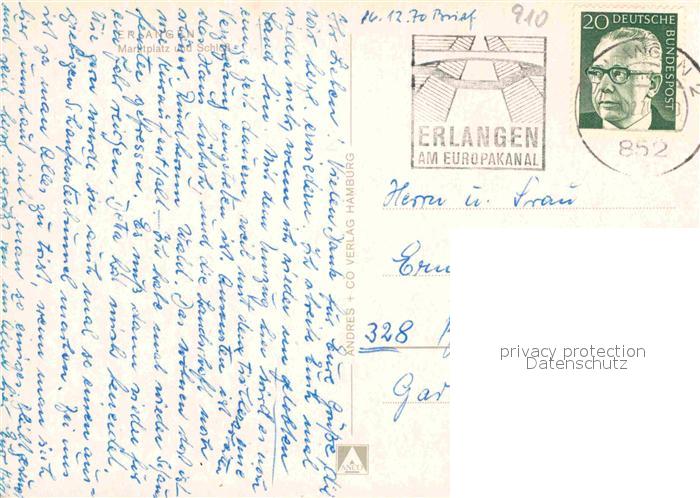 72636187 alte Postkarte ERLANGEN Bayern Marktplatz und Schloss postalisch gelaufen Erhaltung siehe scans [WerneD78] KatCode: 11110009562000