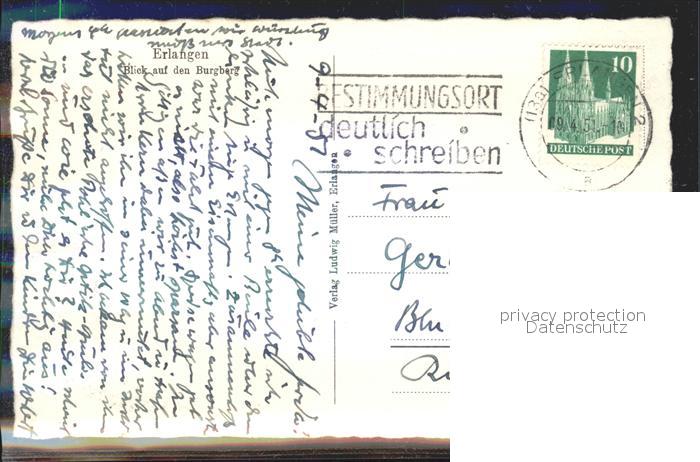 72144653 alte Postkarte ERLANGEN Bayern mit Burgberg postalisch gelaufen Erhaltung siehe scans KatCode: 11110009562000
