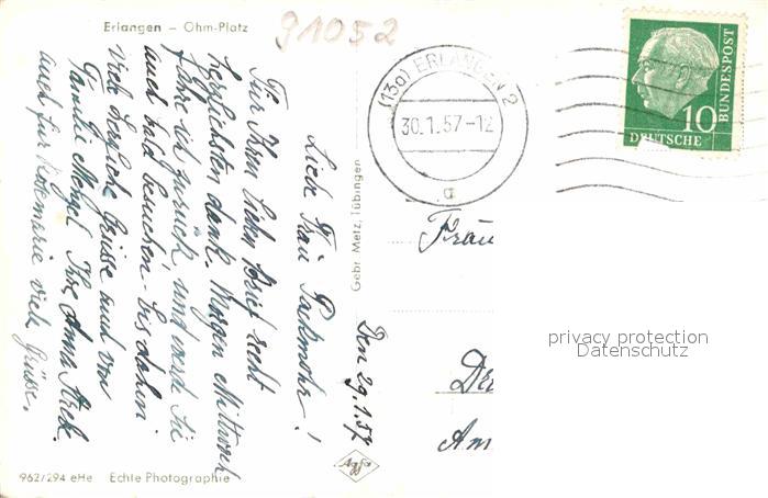 72634619 alte Postkarte ERLANGEN Bayern Ohm Platz Wasserspiele postalisch gelaufen Erhaltung siehe scans [KathaD79] KatCode: 11110009562000