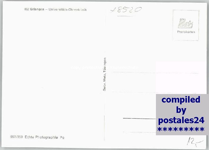 40232501 ERLANGEN Bayern Ohrenklinik ungelaufen ca. 1965 postalisch nicht gelaufen Alte Ansichtskarte Postkarte Katcode 11110009562000