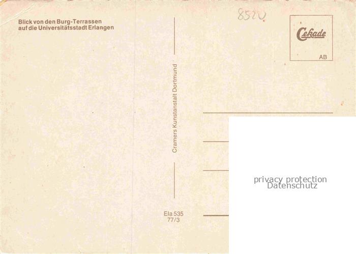74049777 ERLANGEN Bayern Panorama Blick von den Burg-Terrassen auf die Universitaetsstadt postalisch nicht gelaufen Erhaltung siehe scans [FriedD77] Frie Katcode 11110009562000