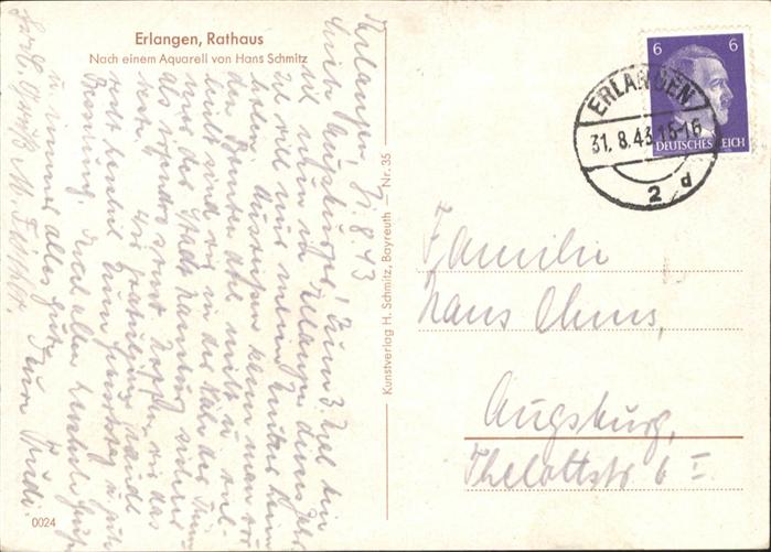 40997433 ERLANGEN Bayern Rathaus Kuenstler Hans Schmitz postalisch gelaufen Alte Ansichtskarte Postkarte alte Postkarte Katcode 11110009562000
