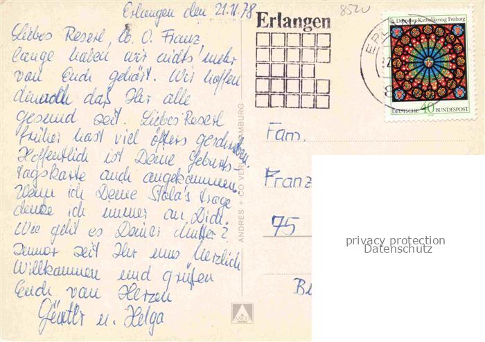 74049785 ERLANGEN Bayern Rathaus Marktplatz Brunnen Schlosspark postalisch gelaufen Erhaltung siehe scans [FriedD77] alte Postkarte Frie Katcode 11110009562000