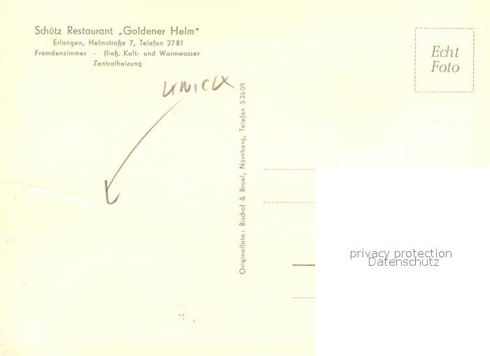73077086 ERLANGEN Bayern Restaurant Goldener Helm postalisch nicht gelaufen Erhaltung siehe scans [KathaD81] KatCode: 11110009562000