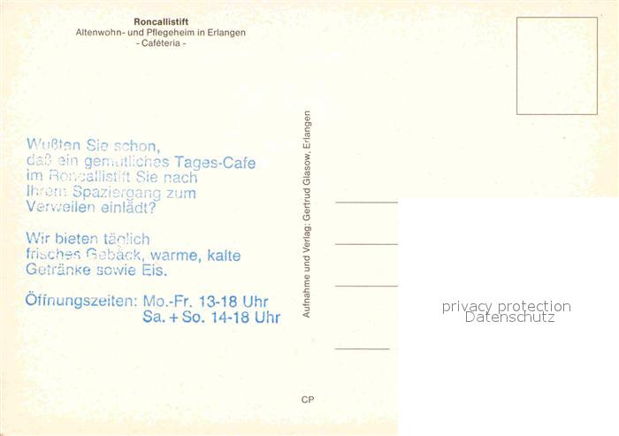 72860894 ERLANGEN Bayern Roncallistift Cafetheria postalisch nicht gelaufen Erhaltung siehe scans [AndreD76] KatCode: 11110009562000
