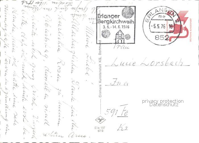72084043 alte Postkarte ERLANGEN Bayern Schloss Hugenottenbrunnen im Schlossgarten Universitaetsstadt postalisch gelaufen Erhaltung siehe scans KatCode: 11110009562000