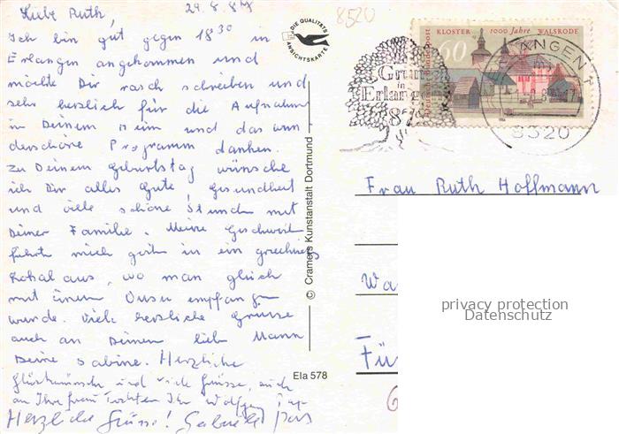 74049818 ERLANGEN Bayern Siemens AG Verwaltung Hugenottenbrunnen Schlosspark Klinik Europakanal Rathaus Schloss Markgrafentheater Dechsendorfer Weiher postalisch gelaufen Erhaltung siehe scans [FriedD77] alte Postkarte Frie Katcode 11110009562000