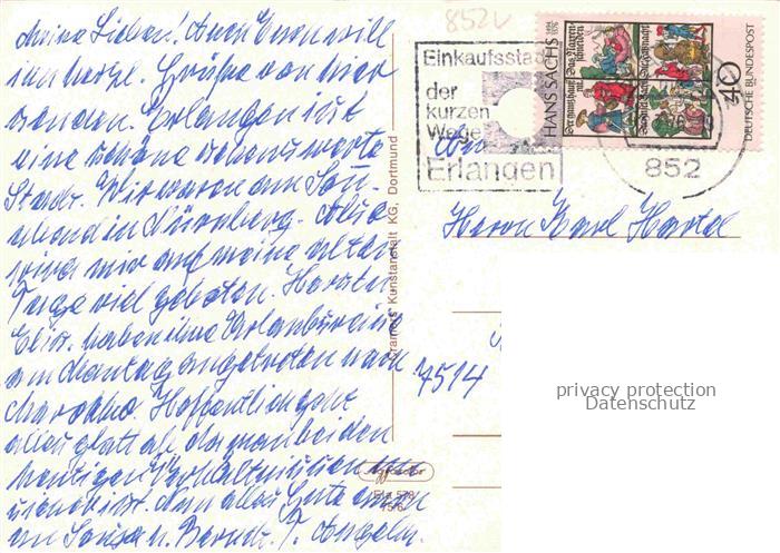 74049823 ERLANGEN Bayern Siemens Verwaltung Hugenottenbrunnen Schlosspark Europakanal Klinik Rathaus Neuer Markt Schloss Markgrafentheater Dechsendorfer Weiher postalisch gelaufen Erhaltung siehe scans [FriedD77] alte Postkarte Frie Katcode 11110009562000