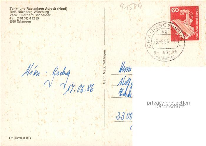 73862569 ERLANGEN Bayern Tank- und Rastanlage Aurach Restaurant Schlossplatz Markt postalisch gelaufen Erhaltung siehe scans [FriedD77] alte Postkarte Frie Katcode 11110009562000