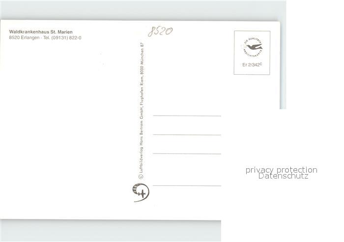 72080940 ERLANGEN Bayern Waldkrankenhaus St Marien Fliegeraufnahme postalisch nicht gelaufen Erhaltung siehe scans KatCode: 11110009562000