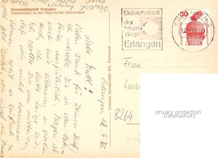 73785215 ERLANGEN Bayern Wasserraeder an der Regnitz bei Moehrendorf postalisch gelaufen Erhaltung siehe scans [WerneD78] alte Postkarte Wern Katcode 11110009562000