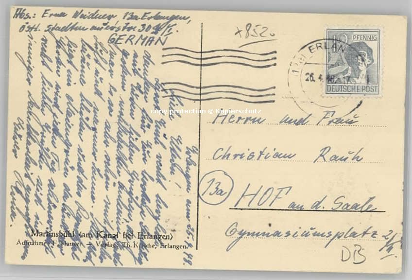 40231807 ERLANGEN Bayern x 1948 postalisch gelaufen Alte Ansichtskarte Postkarte alte Postkarte Katcode 11110009562000