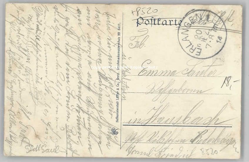 40231903 Erlangen Feldpost x 1914 KatCode 11110009562000