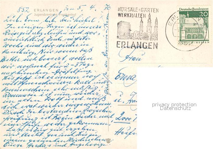 73163480 alte Postkarte Erlangen Jugendzentrum Frankenhof postalisch gelaufen Erhaltung siehe scans [WerneD78] KatCode: 11110009562000