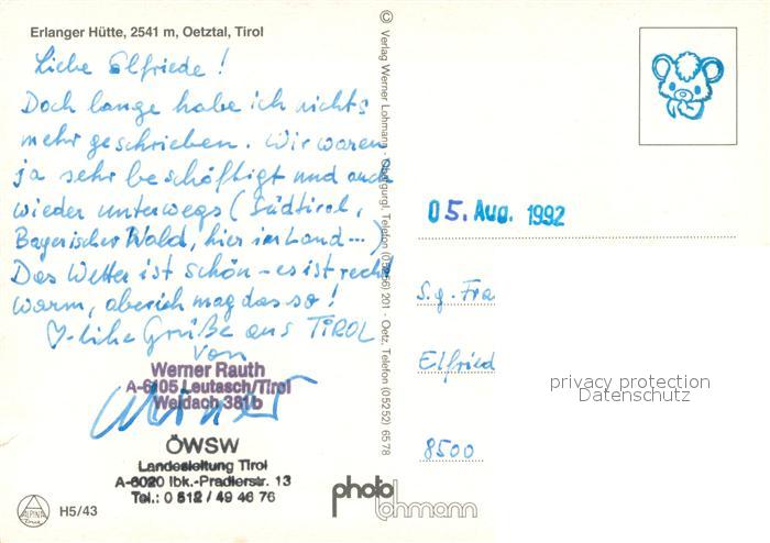 73721667 Erlangerhuette 2541m oetztal Tirol Panorama postalisch nicht gelaufen Erhaltung siehe scans [WerneD78] KatCode: 11390334070214