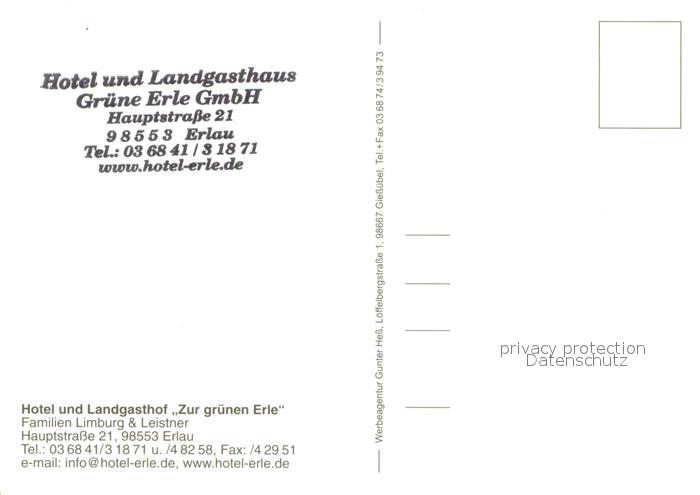73662881 Erlau Schleusingen Landgasthaus Hotel zur gr?nen Erle postalisch nicht gelaufen Erhaltung siehe scans [LiesaD40] KatCode: 11110016069043