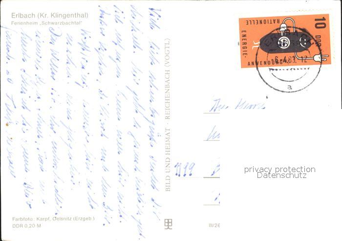 72590763 alte Postkarte Erlbach Vogtland Ferienheim Schwarzbachtal postalisch gelaufen Erhaltung siehe scans [WerneD78] KatCode: 11110014178160