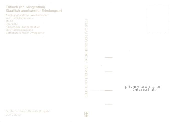 72950598 Erlbach Vogtland Gaststaette Waldschenke Markt Kinderheim Tannenmuehle Betriebsferienheim Waldperle postalisch nicht gelaufen Erhaltung siehe scans [WerneD78] KatCode: 11110014178160