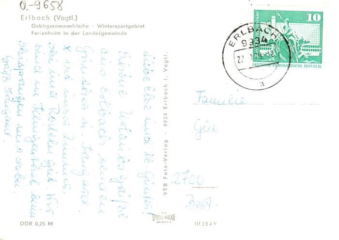 73913282 Erlbach Vogtland Gebirgssommerfrische Wintersportgebiet Ferienheim postalisch gelaufen Erhaltung siehe scans [FriedD77] alte Postkarte Frie Katcode 11110014178160
