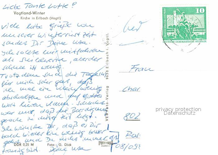 72790070 alte Postkarte Erlbach Vogtland Kirche postalisch gelaufen Erhaltung siehe scans [AndreD76] KatCode: 11110014178160