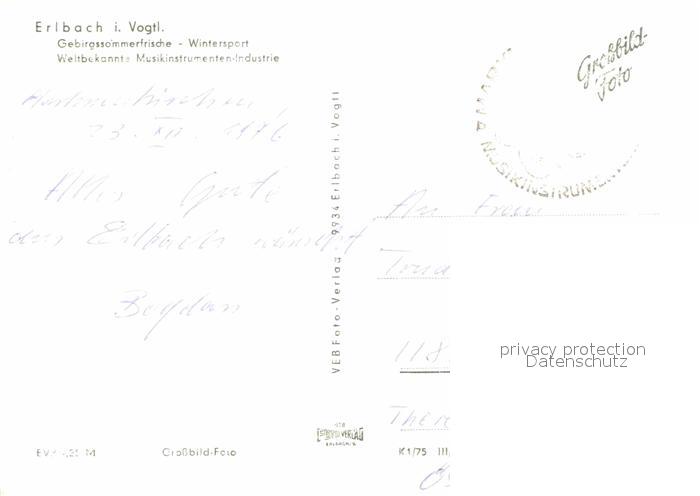 72747201 alte Postkarte Erlbach Vogtland Musikinstrumenten-Industrie postalisch gelaufen Erhaltung siehe scans [LiesaD40] KatCode: 11110014178160