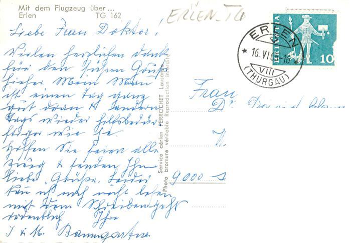 13868752 alte Postkarte Erlen TG Ortsansicht mit Kirche postalisch gelaufen Fliegeraufnahme Erhaltung siehe scans [FriedD77] KatCode: 11470200605988