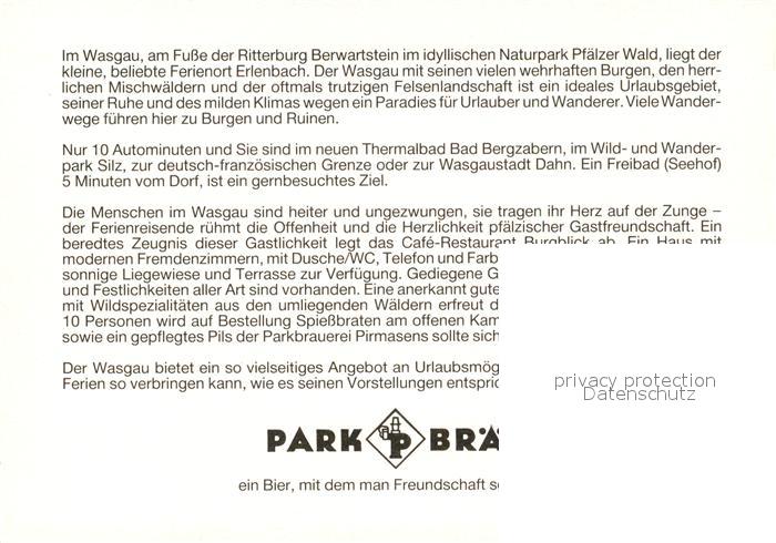 73110461 Erlenbach Dahn Park Braeu postalisch nicht gelaufen Keine Postkarte (siehe scan) Erhaltung siehe scans [NatalD47] KatCode: 11110007340010
